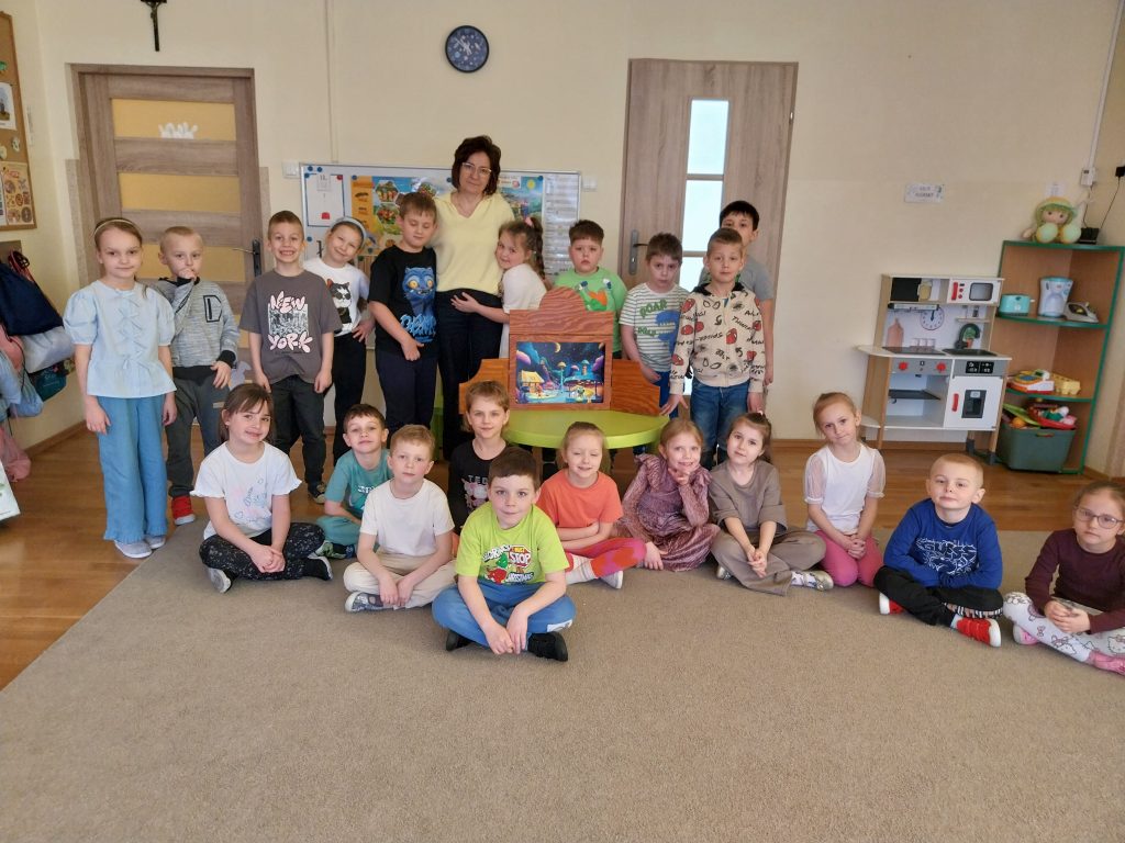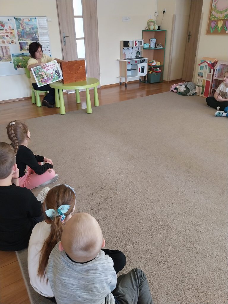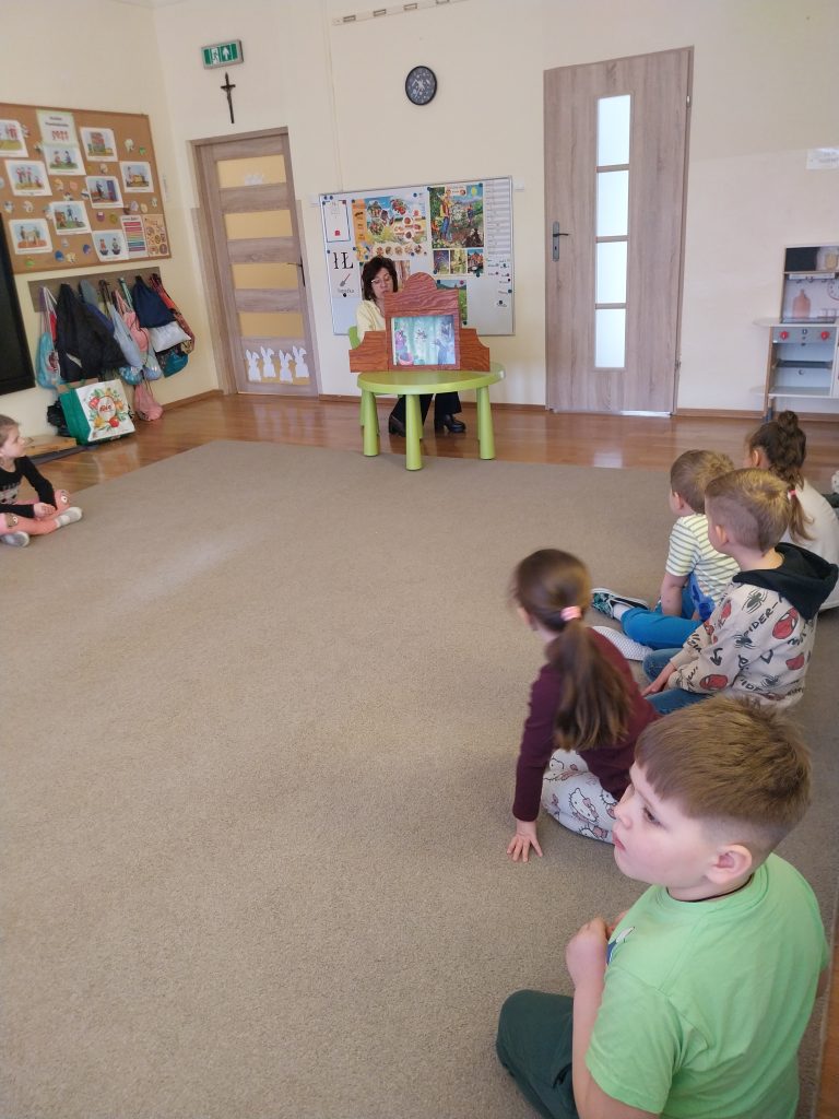 ,,Zajączek wielkanocny” i ,,” to bajki które przedstawiła dzieciom z grupy ,,Zajączki” pani z biblioteki w formie ,,Teatrzyku Kamishibai” . Teatrzyk Kamishibai jest tradycyjną japońską techniką opowiadania historii za pomocą obrazów, nazywaną „papierowym teatrem”.